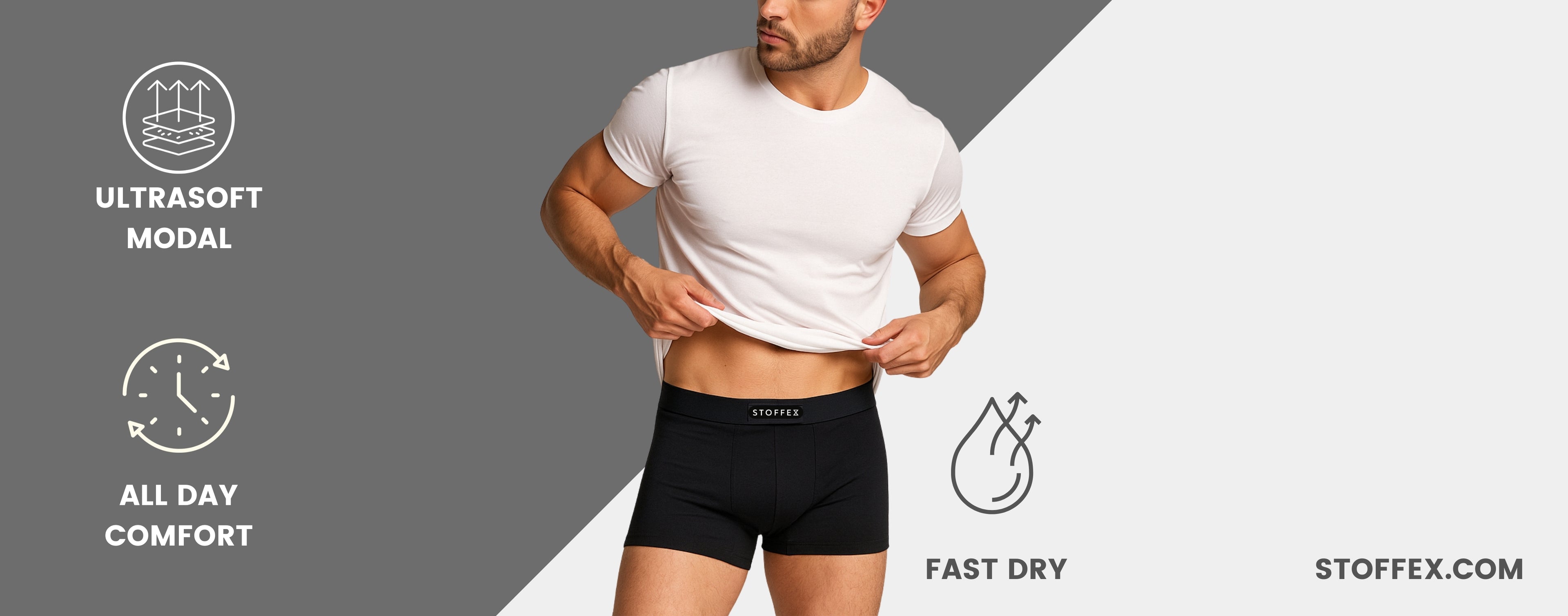 MOD-X Collection by STOFFEX – made from luxurious modal fabric for exceptional softness, durability, slim fit, breathability, and all-day premium comfort with modern style.